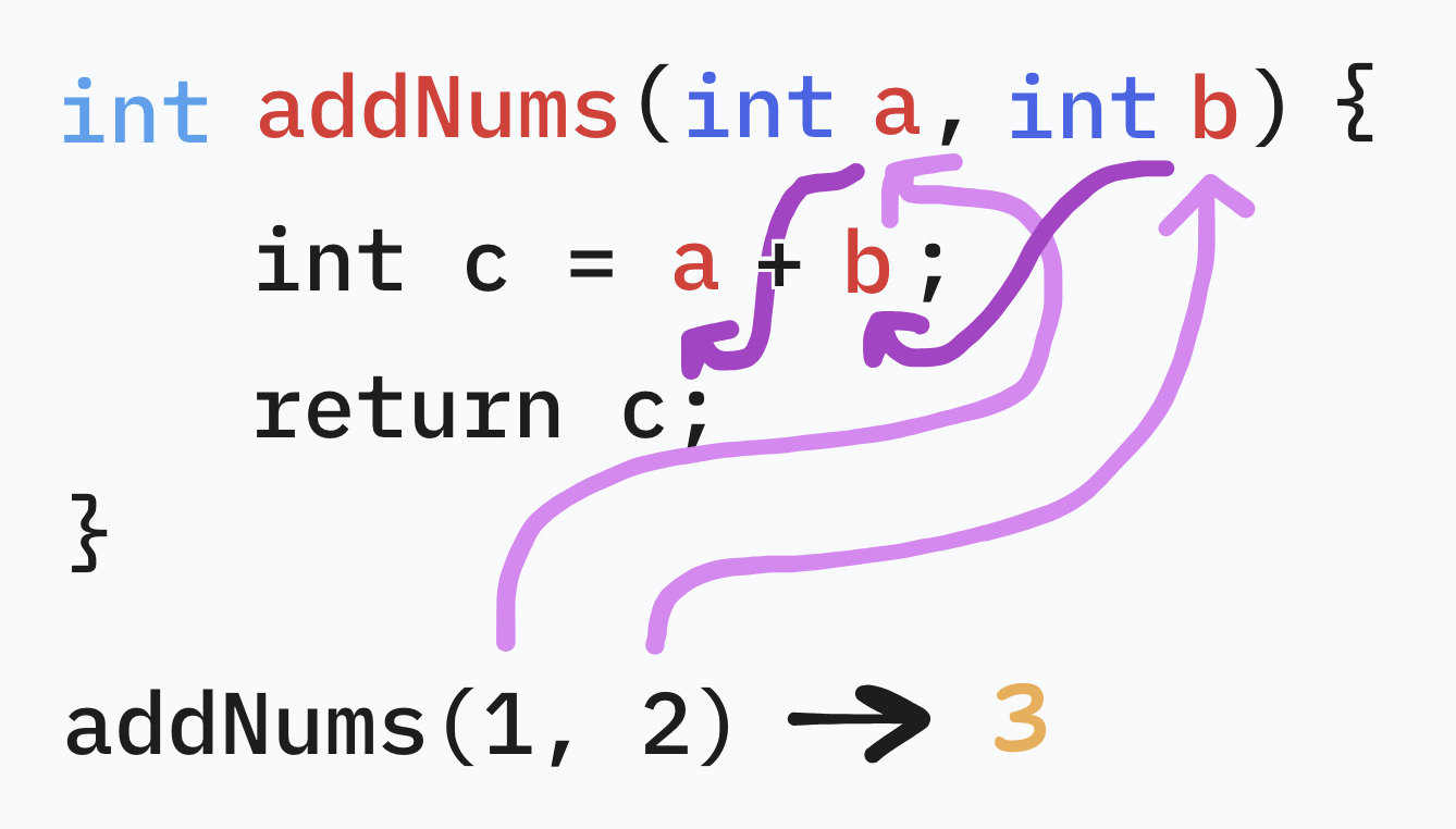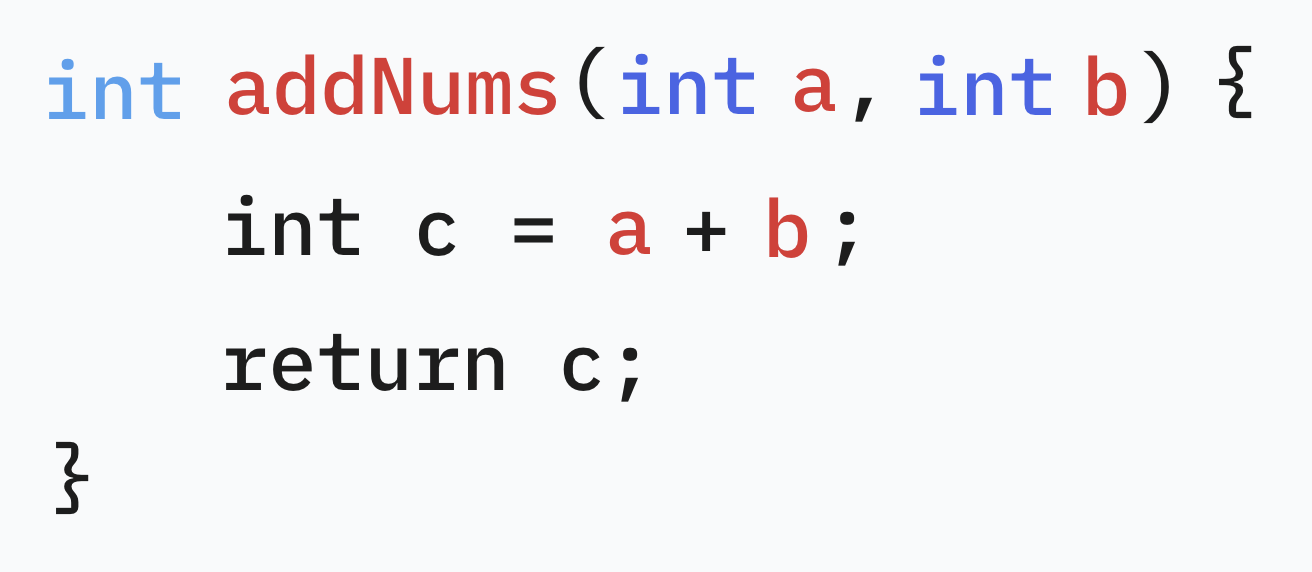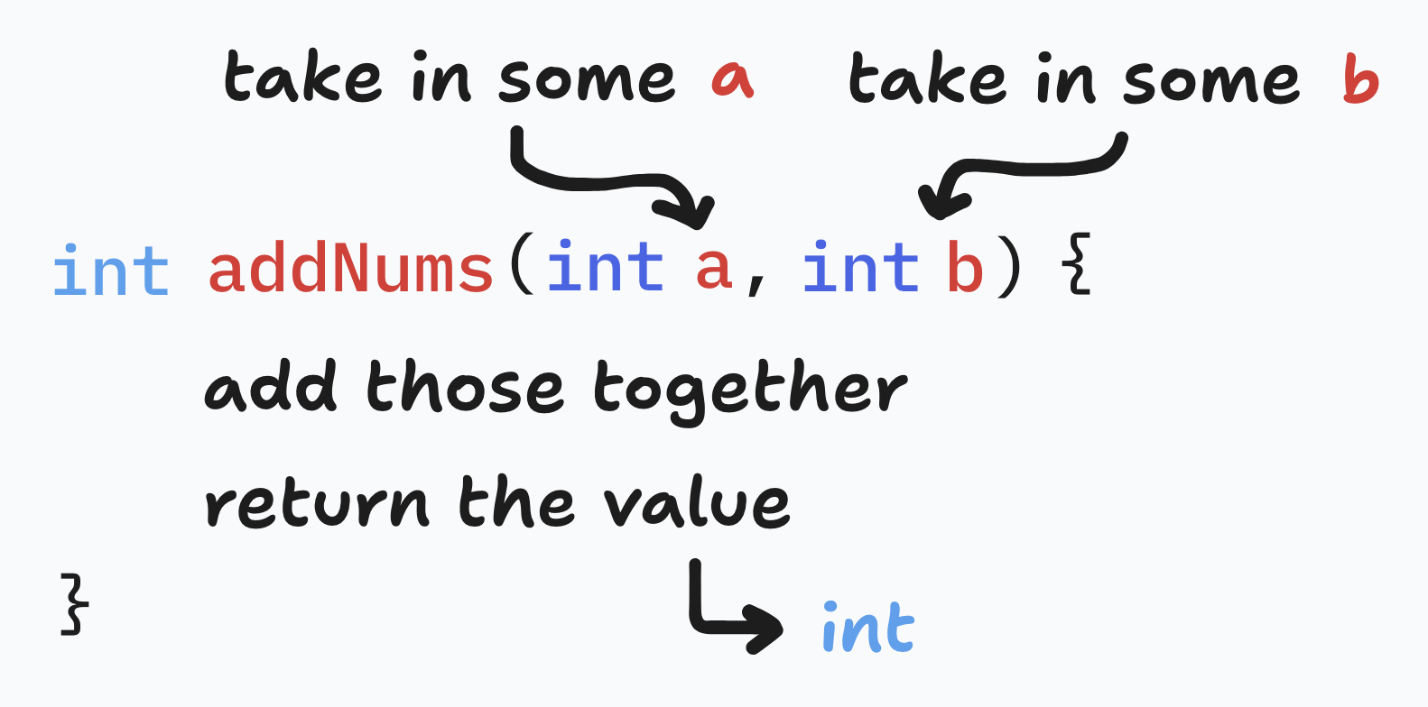 Now, we can translate the inside using basic variable statements. return is a special keyword for functions to 'give back' a value.