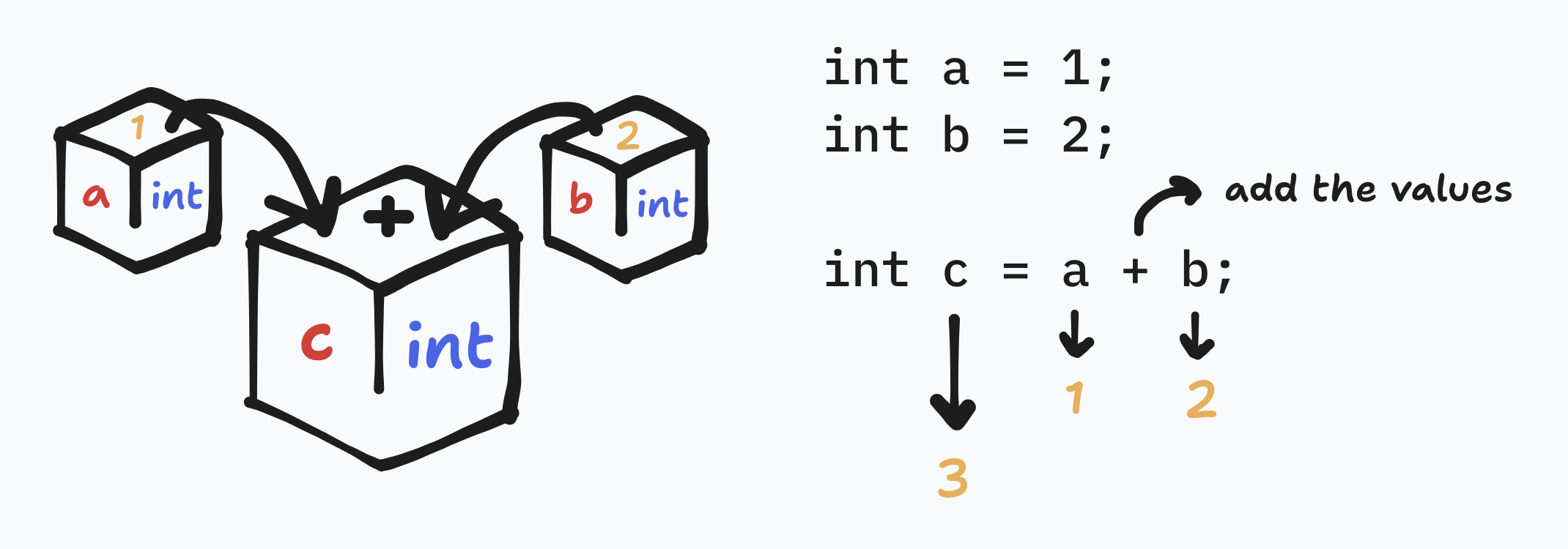 The variable c should be the sum of a and b.