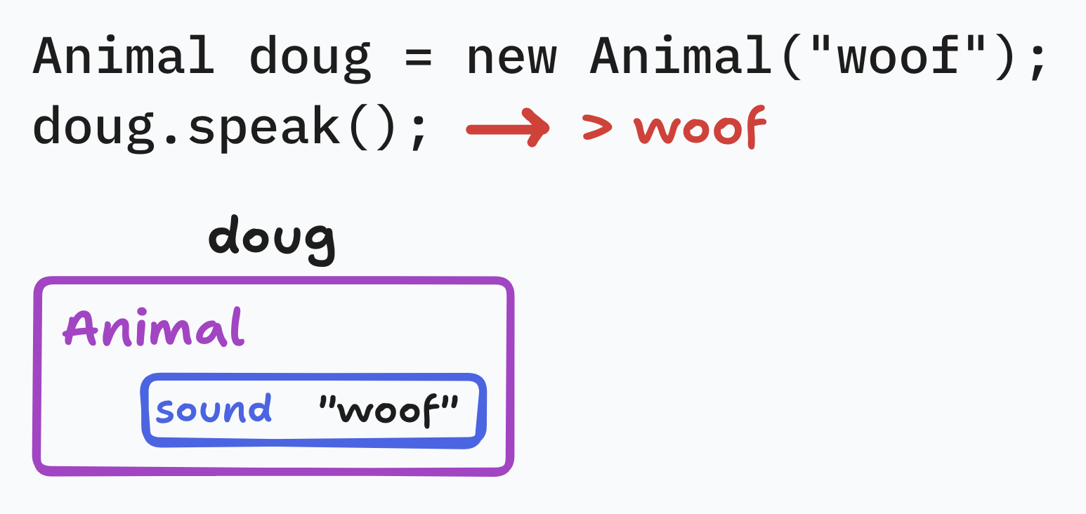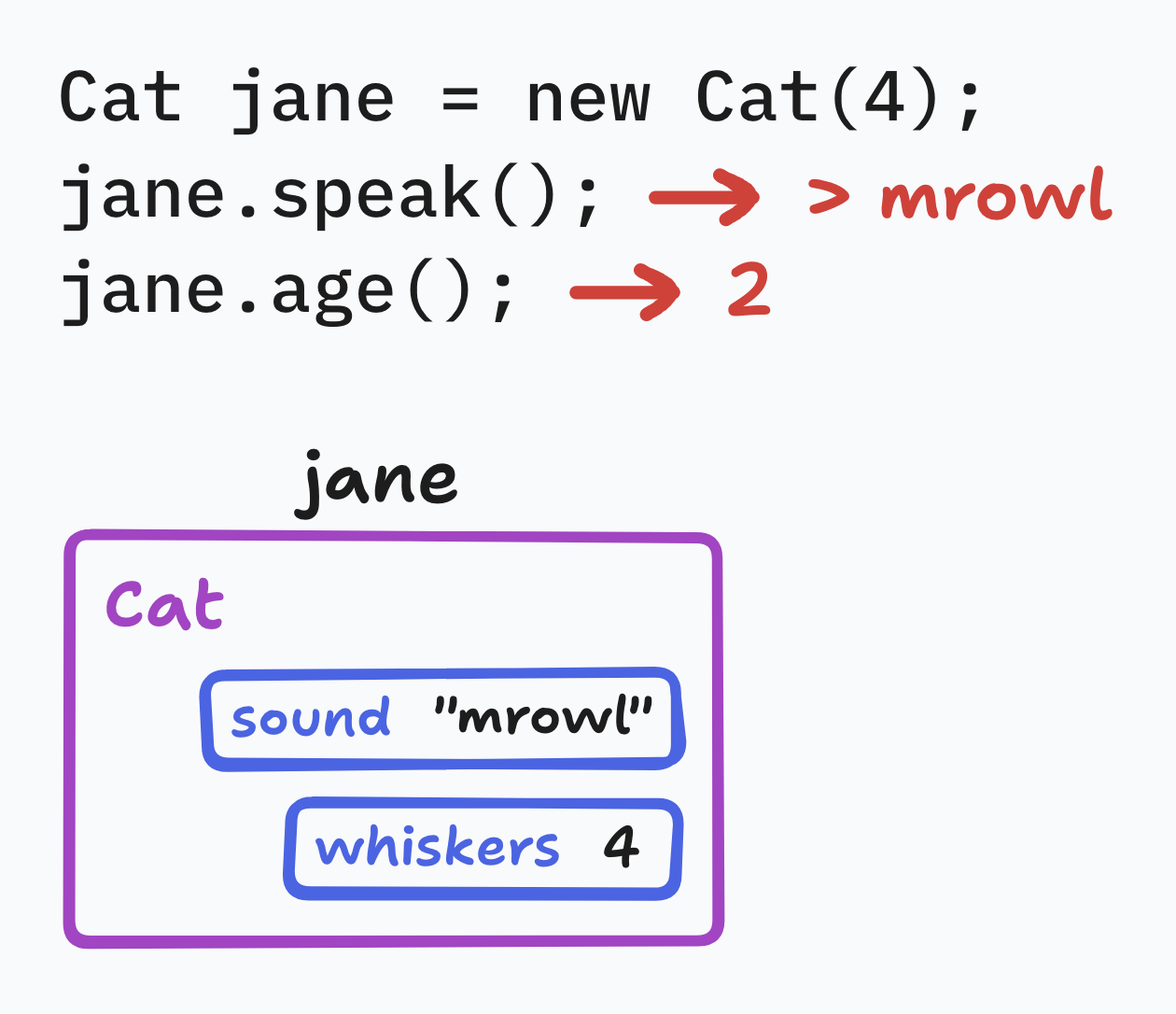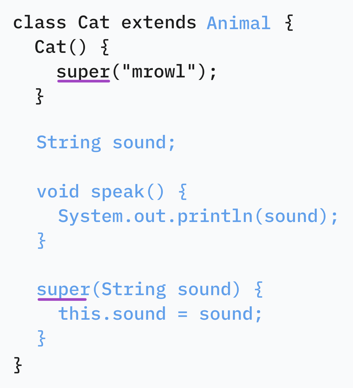 speak can be used based on the Animal superclass, and age was added for the Cat class.